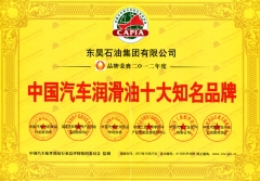 东昊润滑油获得“中国汽车润滑油十大知名品牌”荣誉称号